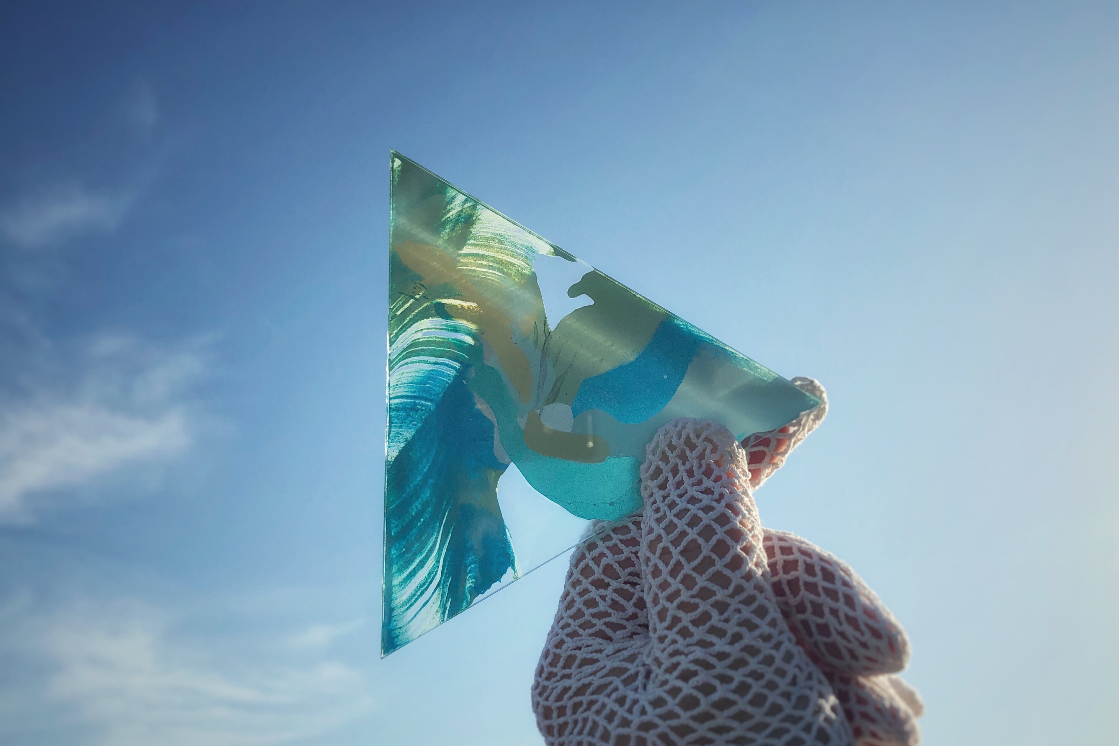 ラメ入りの絵の具を使用しているため、傾けると輝きます。