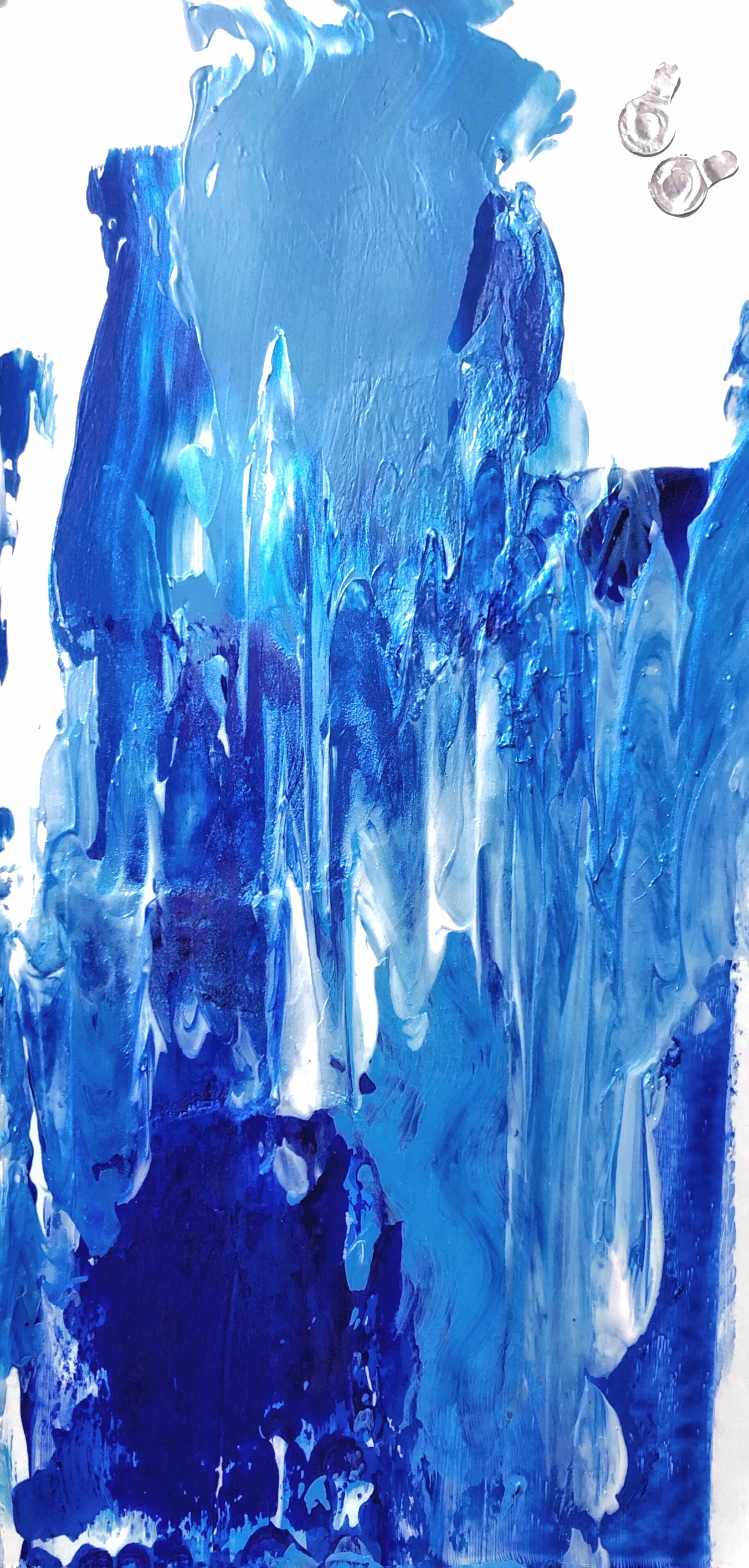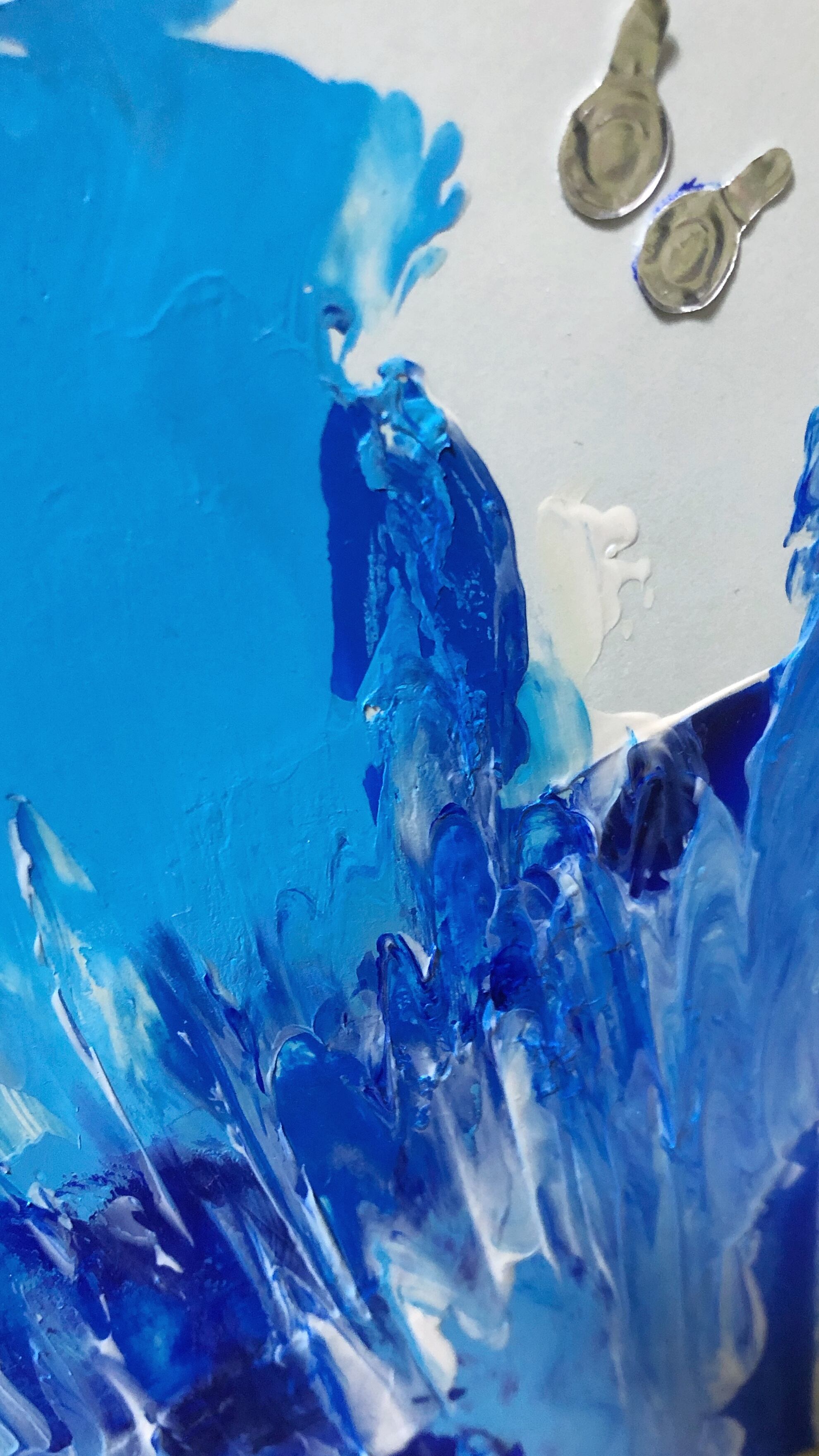 そして、今回の銀色のマテリアルは絵の具の開封栓です。個人的に好きで、美しいと思っているものの一つなのですが、絵の具の封を切ってしまうとどうしても捨てなくてはいけません。今回はタイミング良くshowerの作成にあたって開封栓が出たので作品に彩りを添えてもらいました。