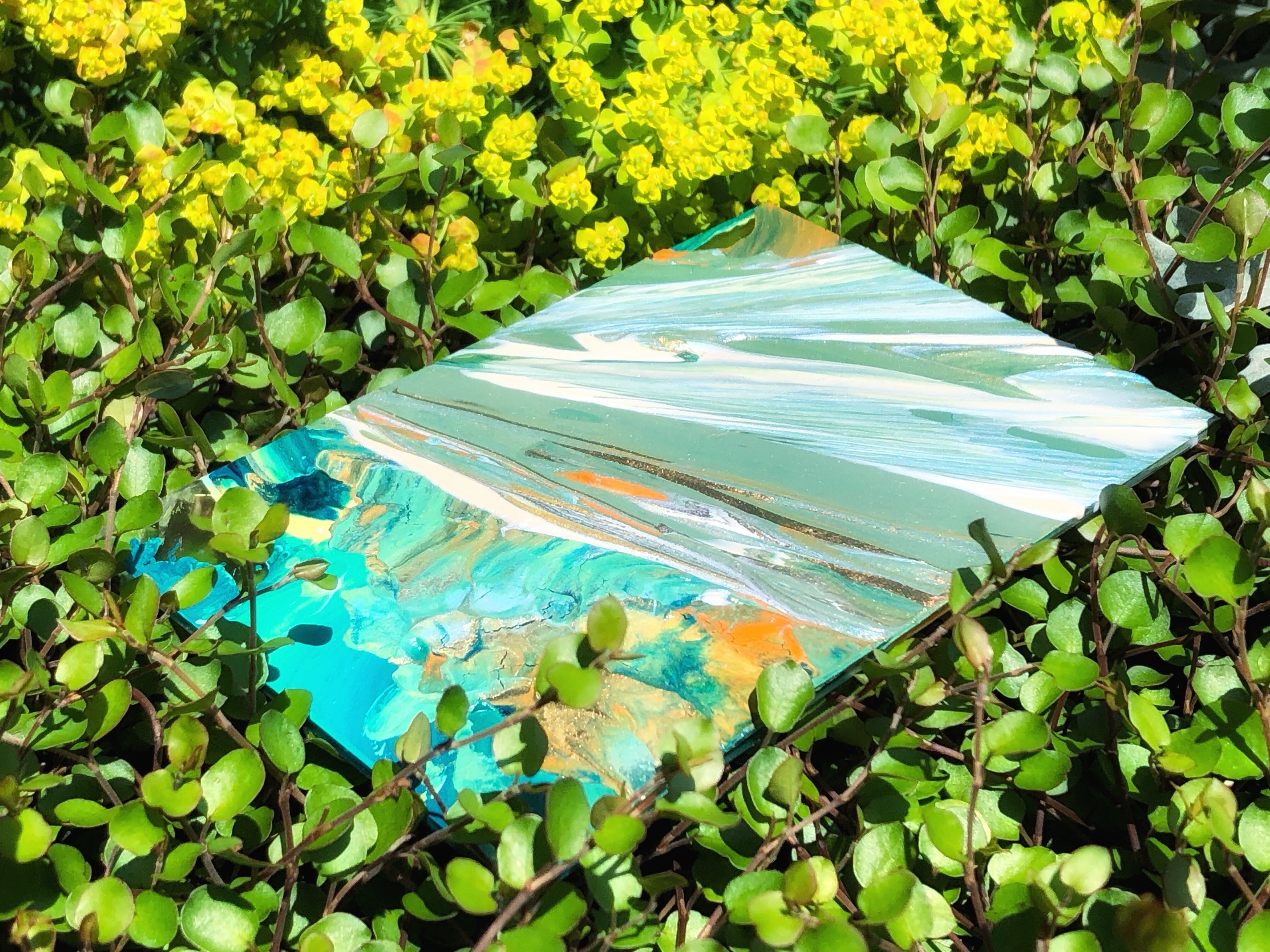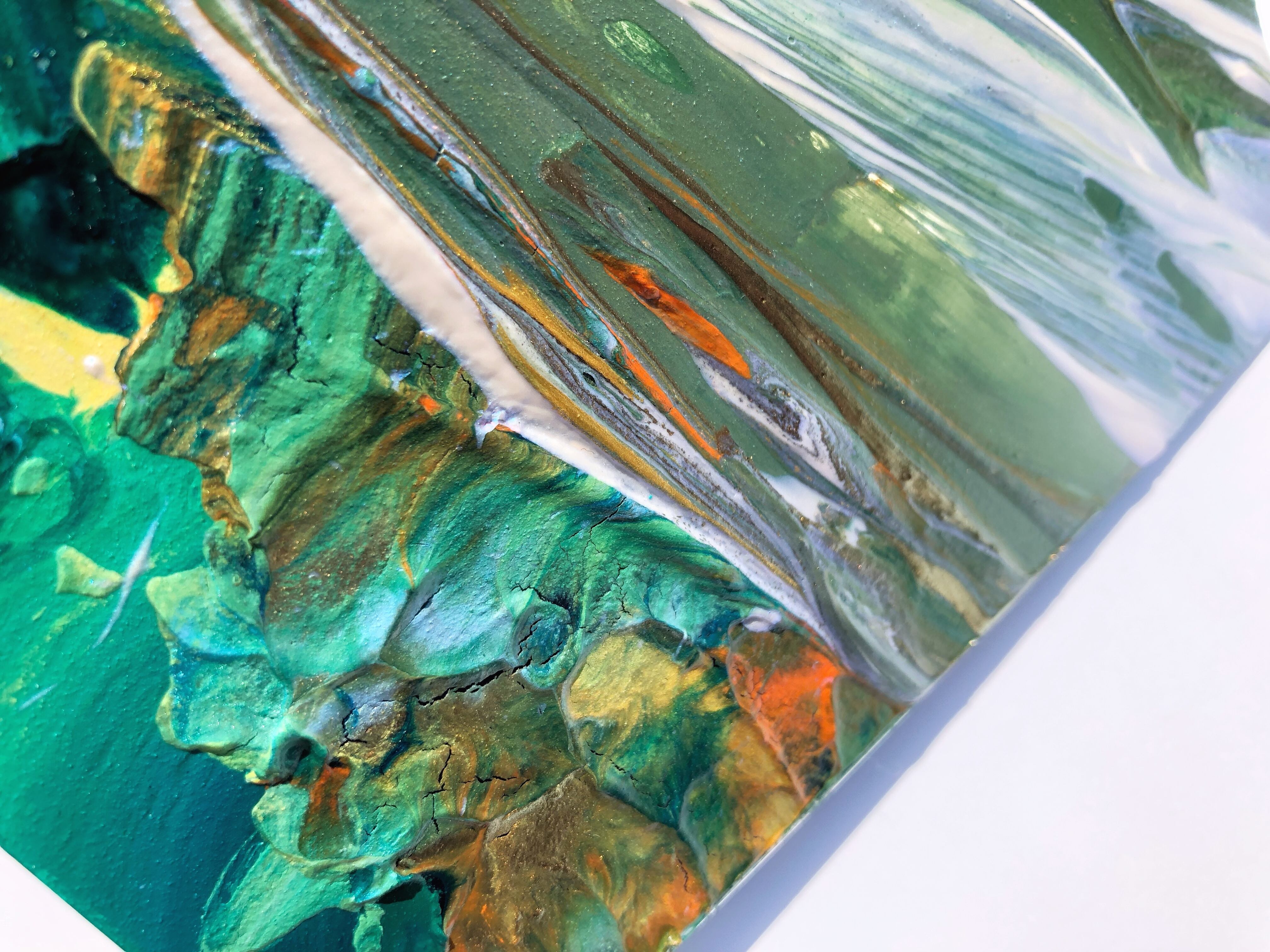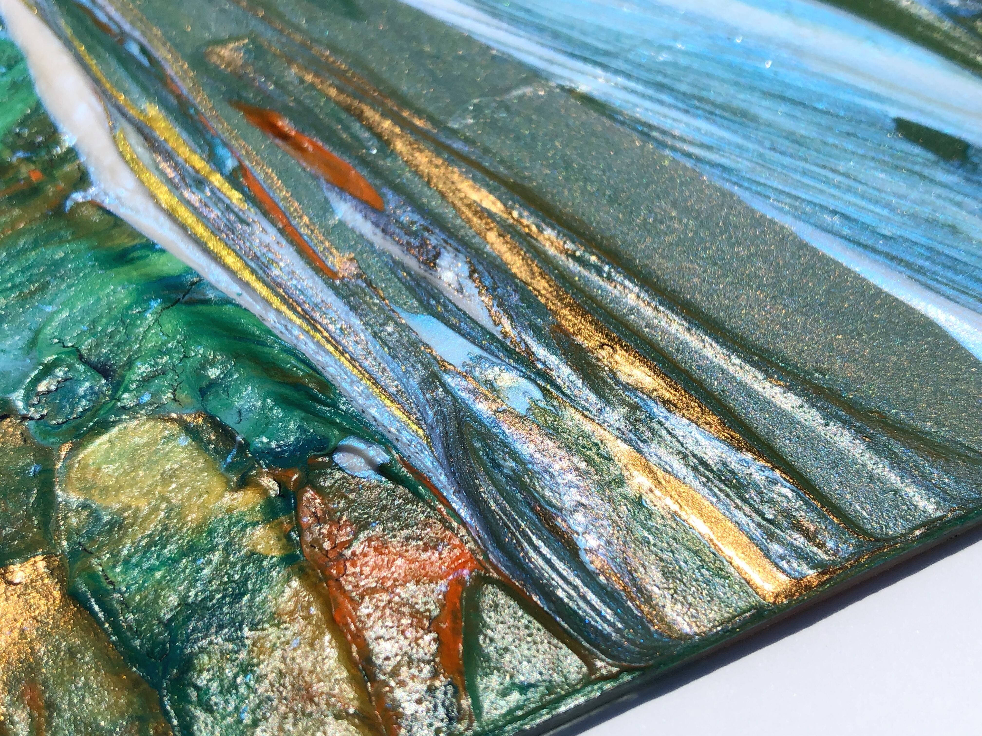 ラメ入り/偏光の絵の具を使用しているため、傾けると輝きます。